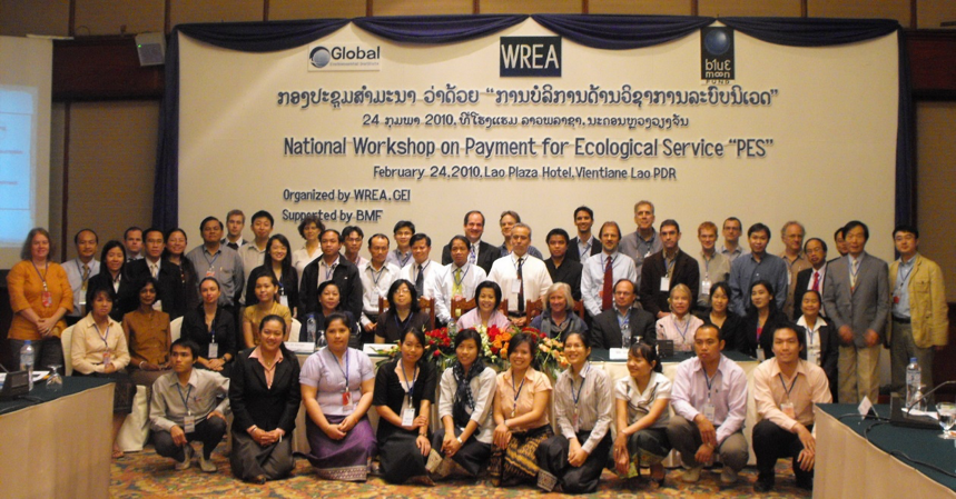 2010年2月24日,北京市朝阳区永续全球环境研究所(GEI)与老挝总理府水资源与环境署(WREA, Water Resource and Environment Administration)在老挝首都万象联合召开了“老挝生态服务付费国际研讨会”。会议由WREA的 Monemany NHoybouakong司长主持召开。GEI项目官员任鹏在会上介绍了GEI在推动PES和社区发展方面所做的工作,并回答了提问。